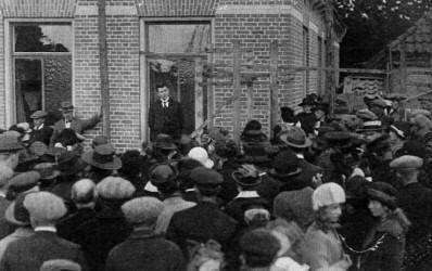 Dit is de voorgevel van de kerk. In 75 jaar praktisch niet veranderd. Het gebouw dat deels voor de kerk stond is inmiddels wel verwijderd.