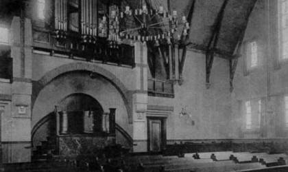 Deze foto geeft een indruk van het interieur van de kerk in 1923. In 1963 vondt de eerste renovatie plaats. In 1969 werd de ruimte uitgebreid met het zgn. Rank-gedeelte. In 1979 volgde de tweede renovatie.